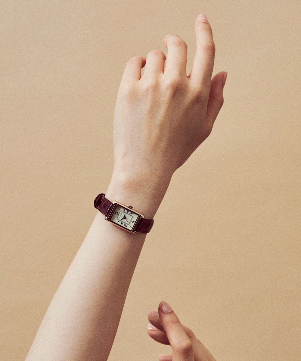 TSUKI 朧月 / SQUARE ROSE GOLD BROWN LEATHER ¥20,900(税込)【MATOW公式】